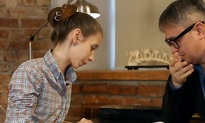 Pervy tutor cums in his lean student !