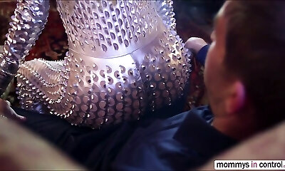 Dark Haired mommy in latex Ava Addams fucks an horny guy